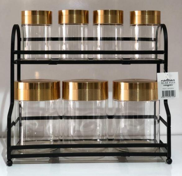 Acar Plus Lüks Gold 7 Parça Şeffaf Cam Baharatlık - Çerezlik KOH-010676/4