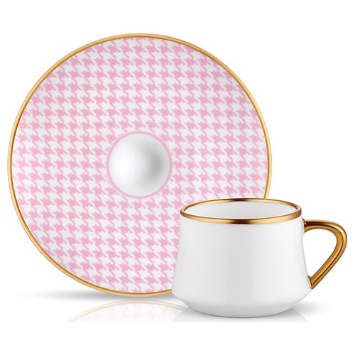 Koleksiyon Ekose Pembe Türk Kahvesi Fincanı 6 'lı