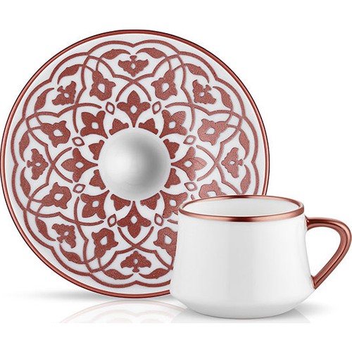 Sufi 6'lı 90cc mat bakır dekorlu bone china Türk kahvesi fincanı seti